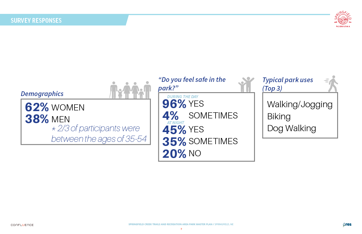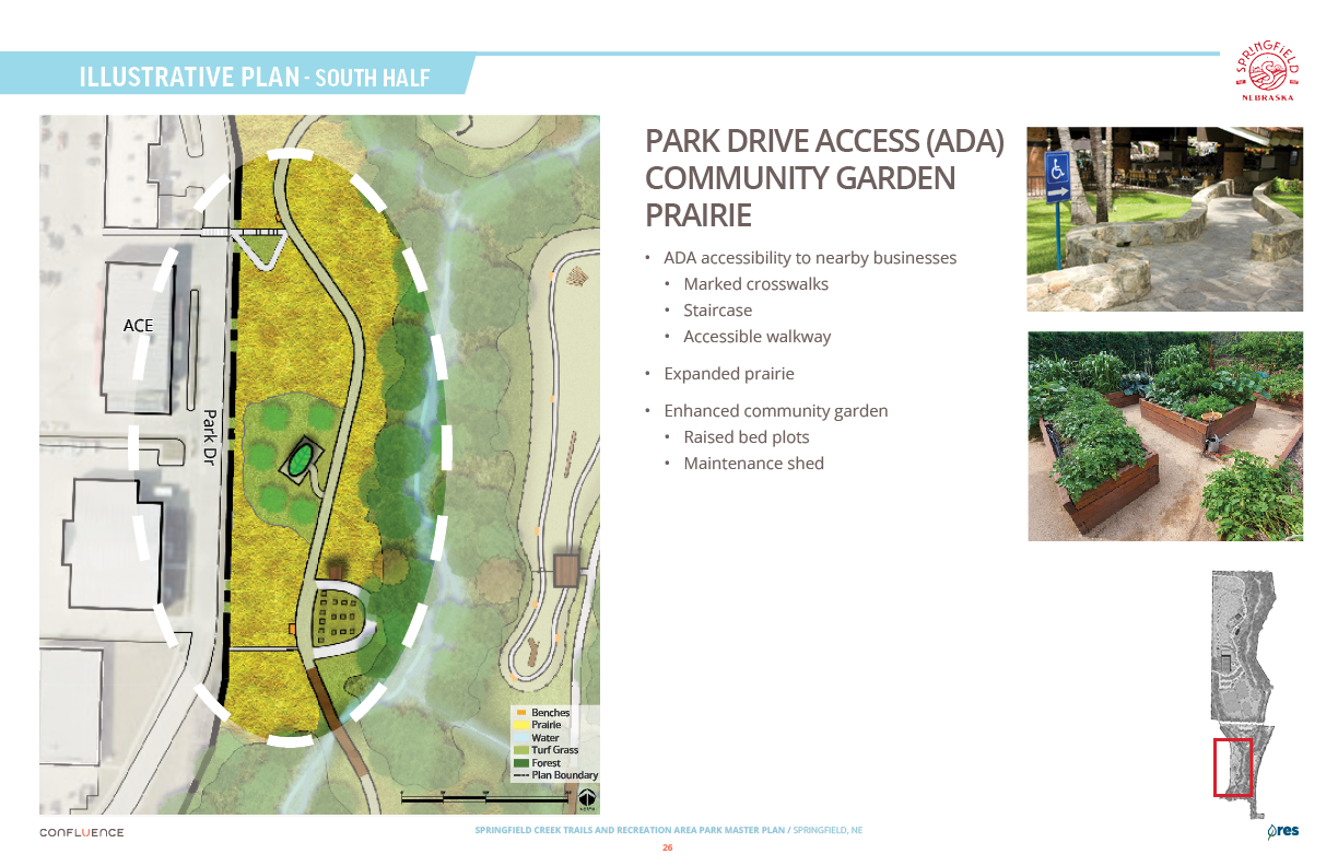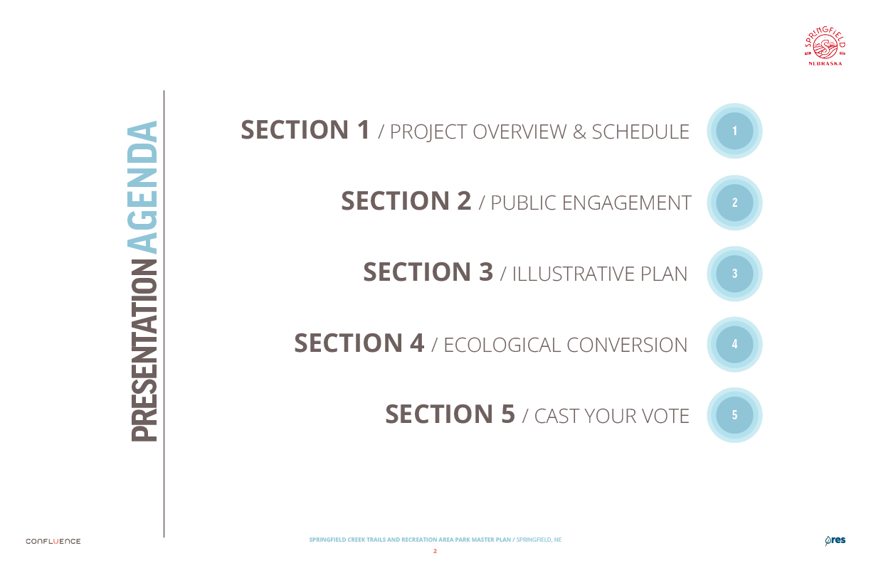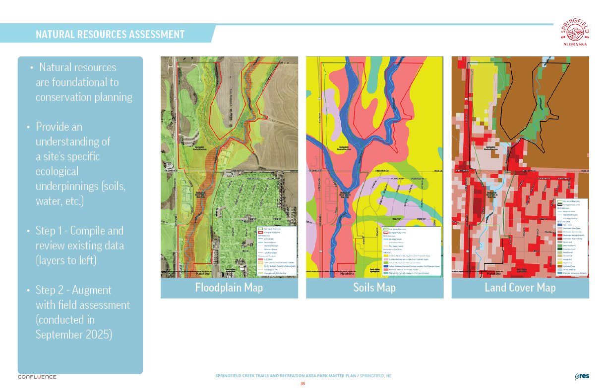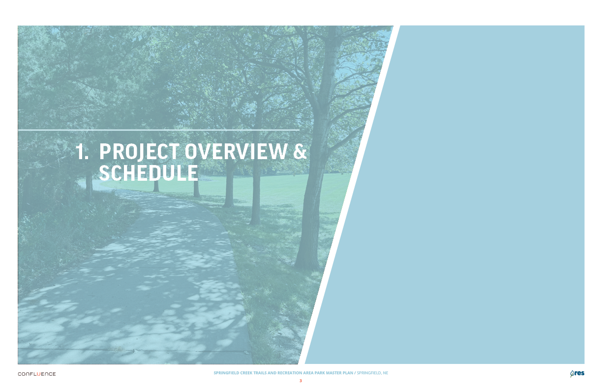 Welcome! The Springfield Creek Trails and Recreation Area offers residents many opportunities to enjoy both active and passive recreation. Over the past several months, the City has partnered with landscape architecture and planning firm Confluence to translate community ideas into a draft Master Plan, following extensive visioning and concept iterations with the steering committee and the public.