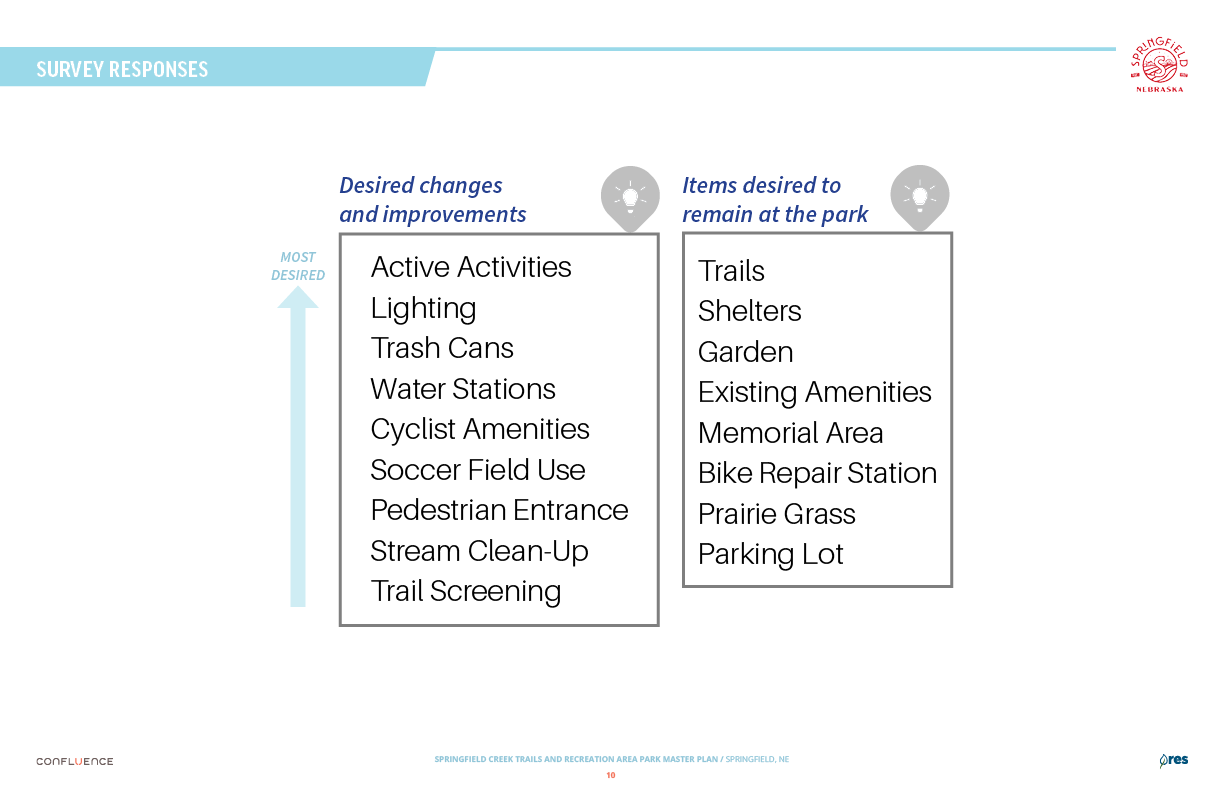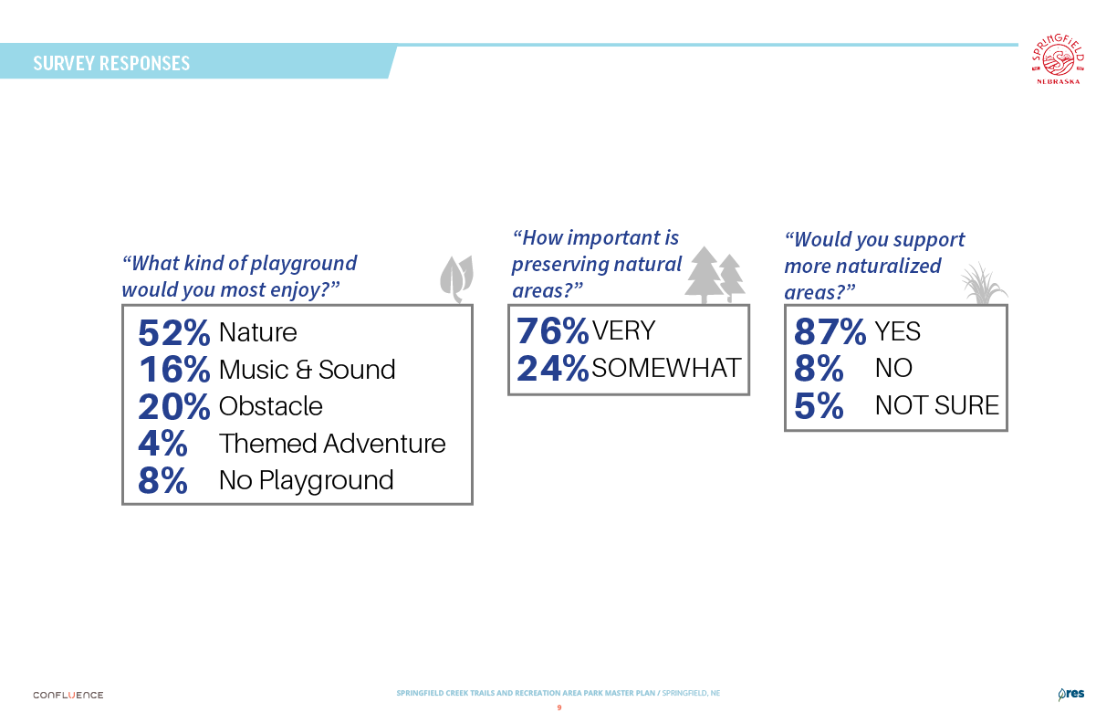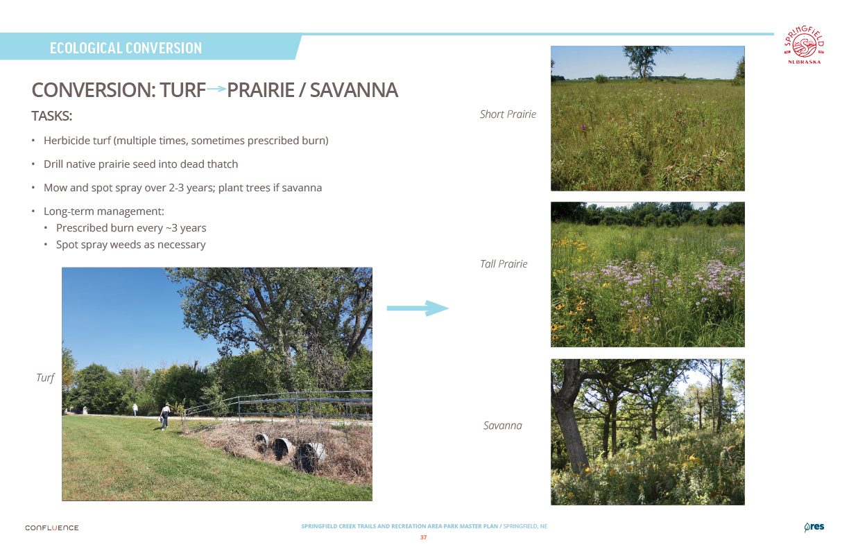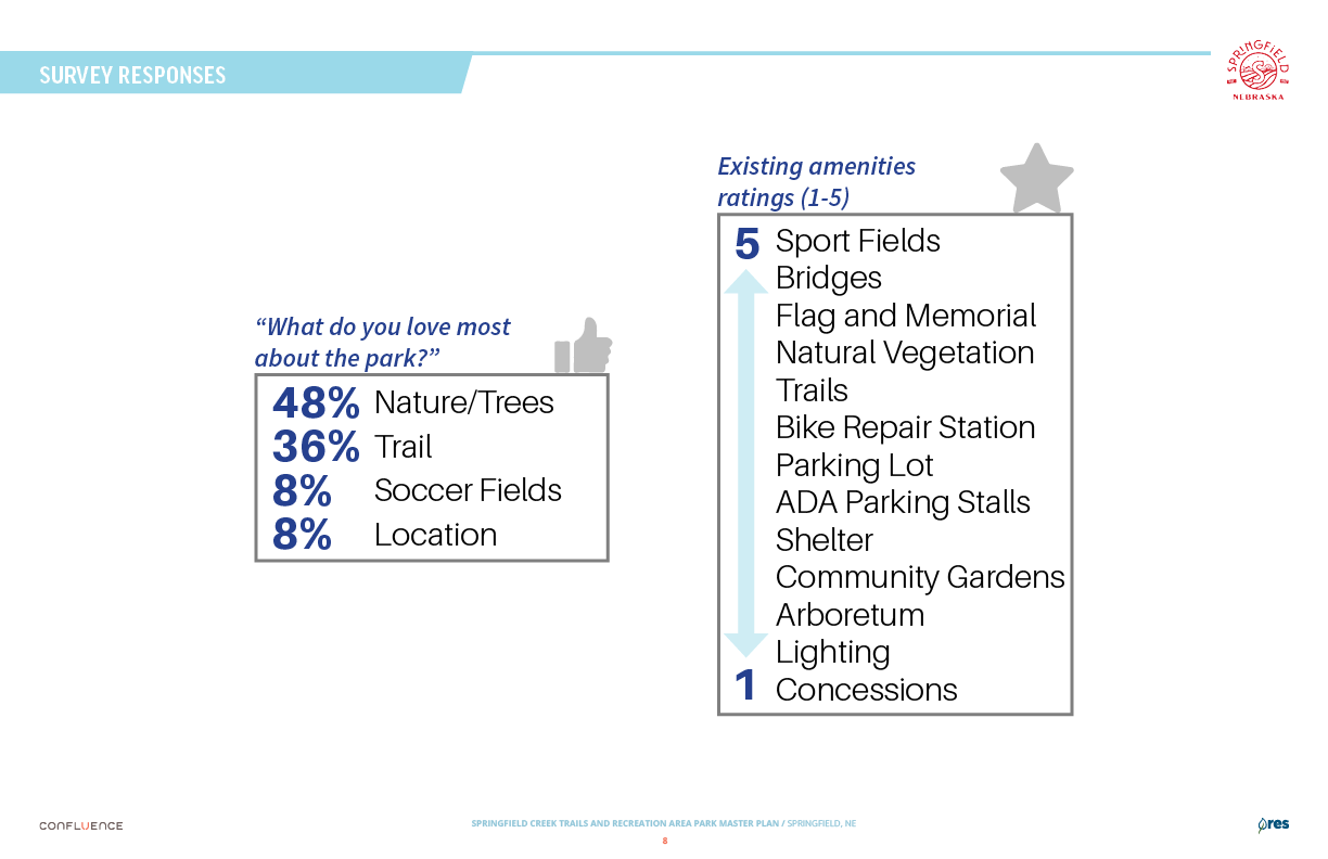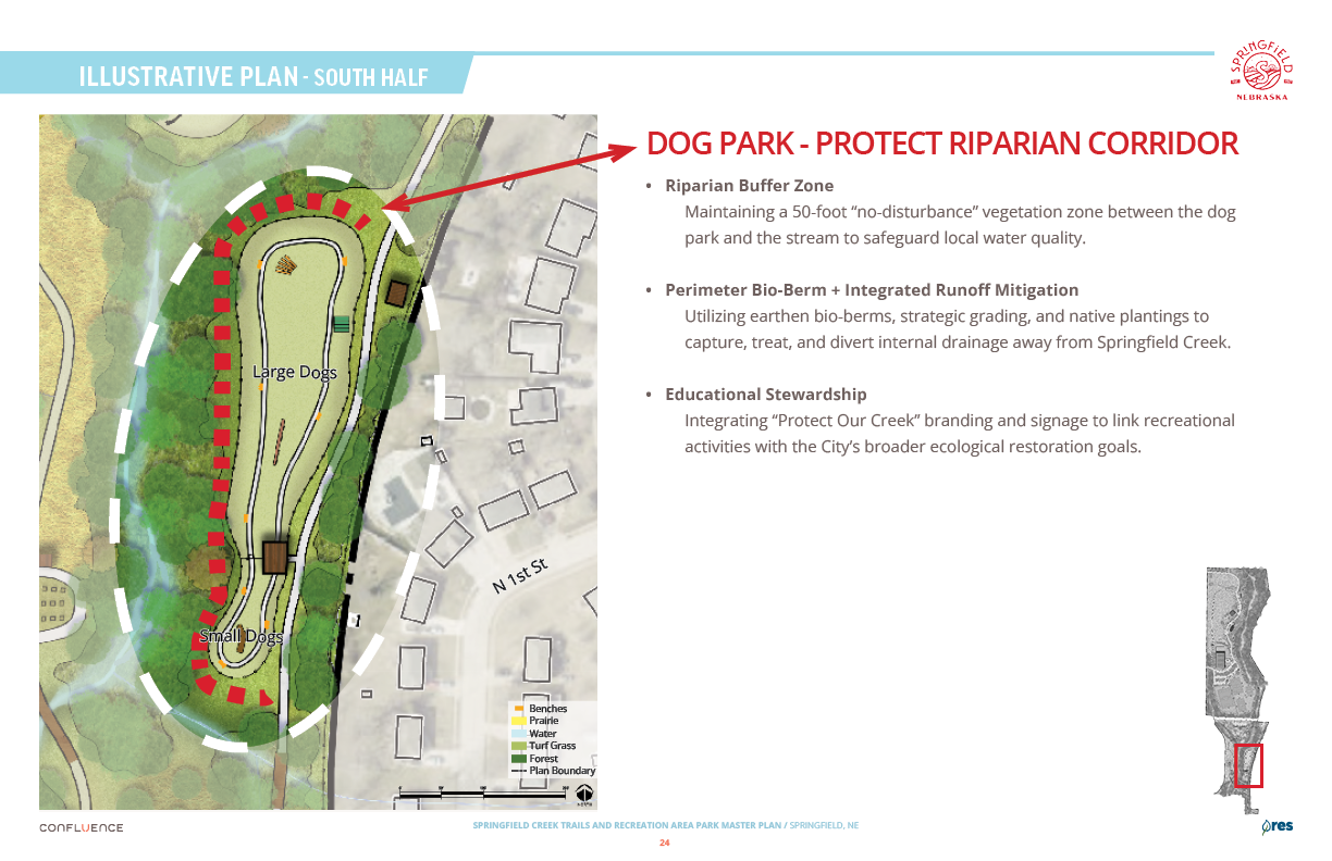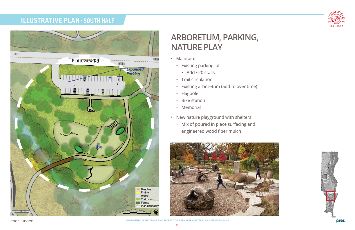 Welcome! The Springfield Creek Trails and Recreation Area offers residents many opportunities to enjoy both active and passive recreation. Over the past several months, the City has partnered with landscape architecture and planning firm Confluence to translate community ideas into a draft Master Plan, following extensive visioning and concept iterations with the steering committee and the public.